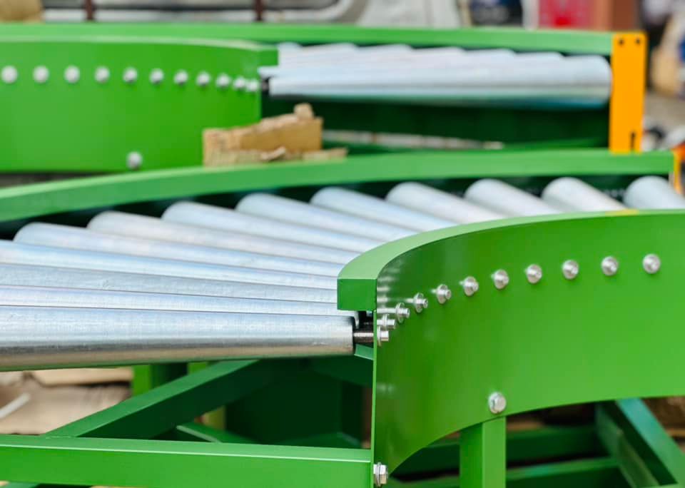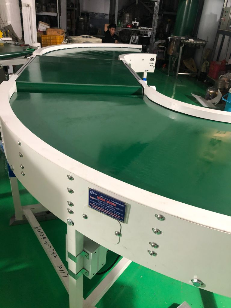 - Băng tải cong dùng để tải hàng hóa khác nhau trong công đoạn sản xuất.