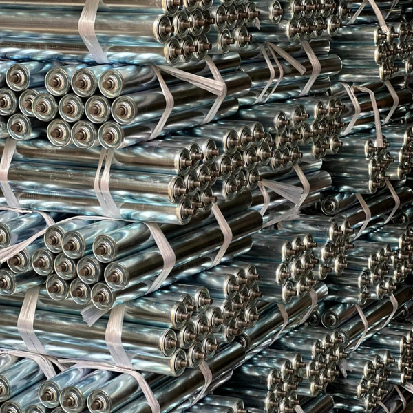 - Con lăn (Roller): Là bộ phận chính, thường làm bằng thép, inox, nhựa (PVC, HDPE) tùy vào môi trường và tải trọng. Có các loại con lăn thẳng, con lăn hình nón (dùng cho chuyển hướng), con lăn có bề mặt ma sát cao.