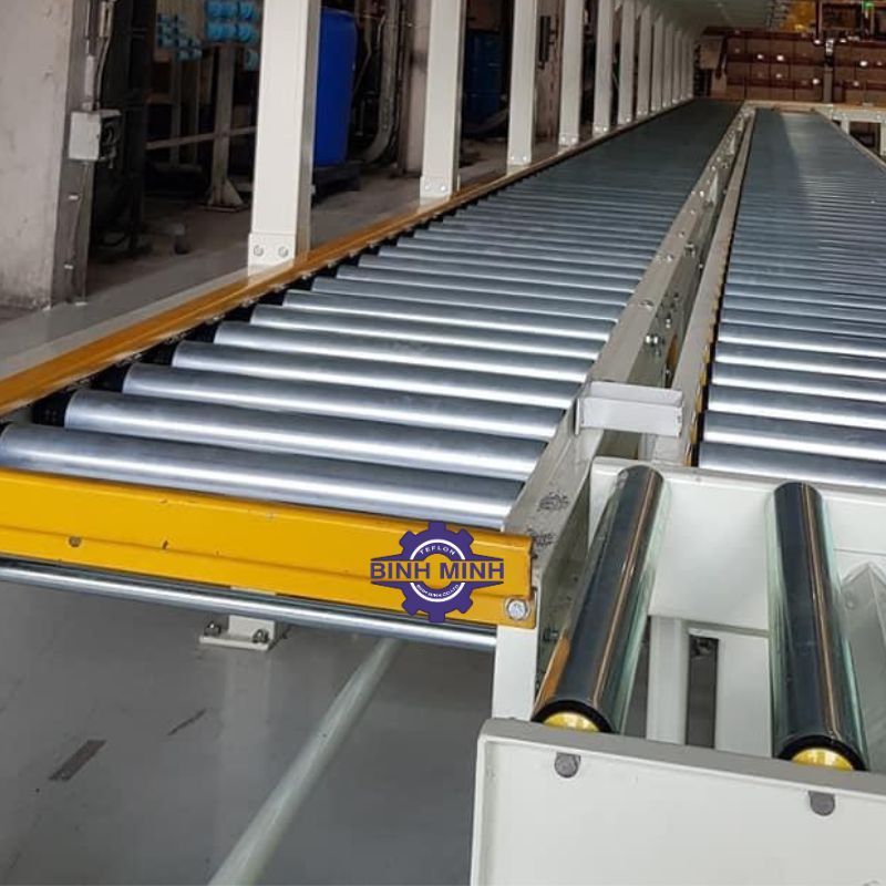 - Nguyên lý: Sử dụng trọng lực. Hệ thống được lắp nghiêng một góc nhỏ, hàng hóa sẽ tự trượt từ vị trí cao xuống vị trí thấp nhờ trọng lượng của chính nó.