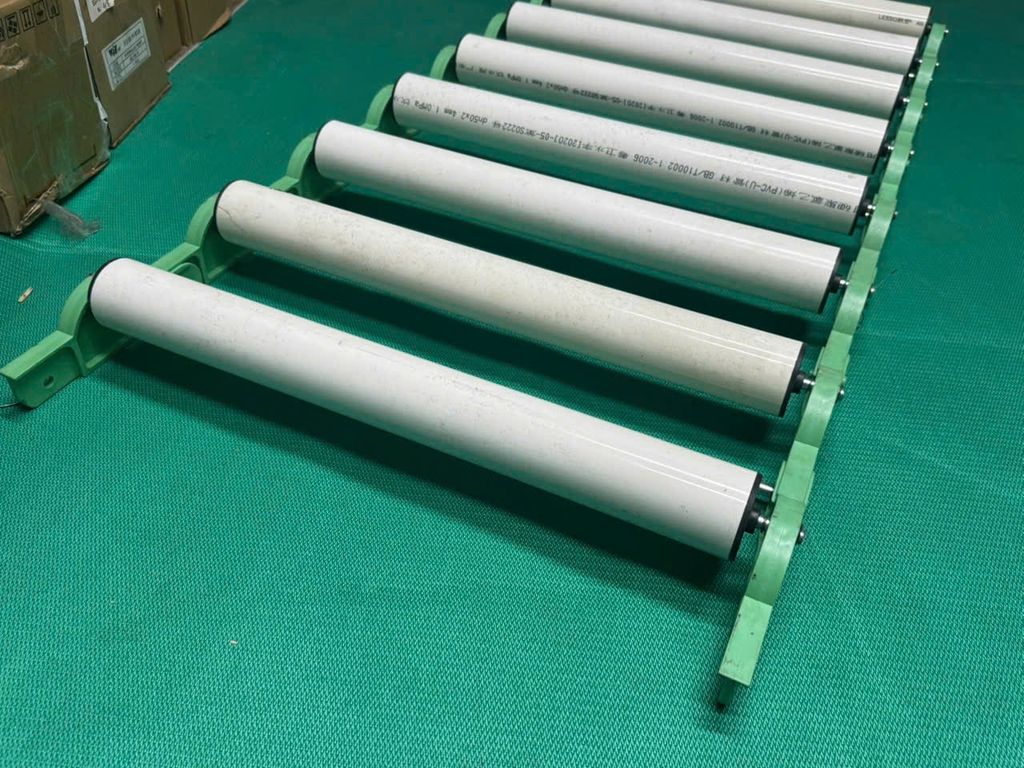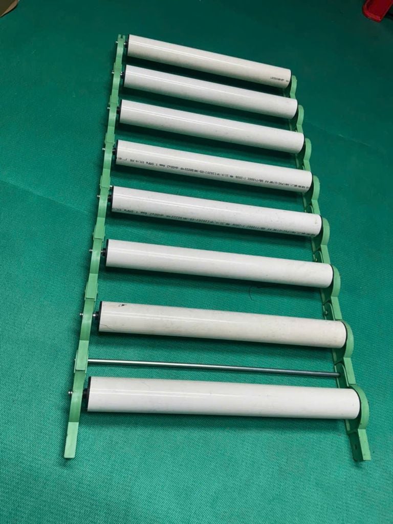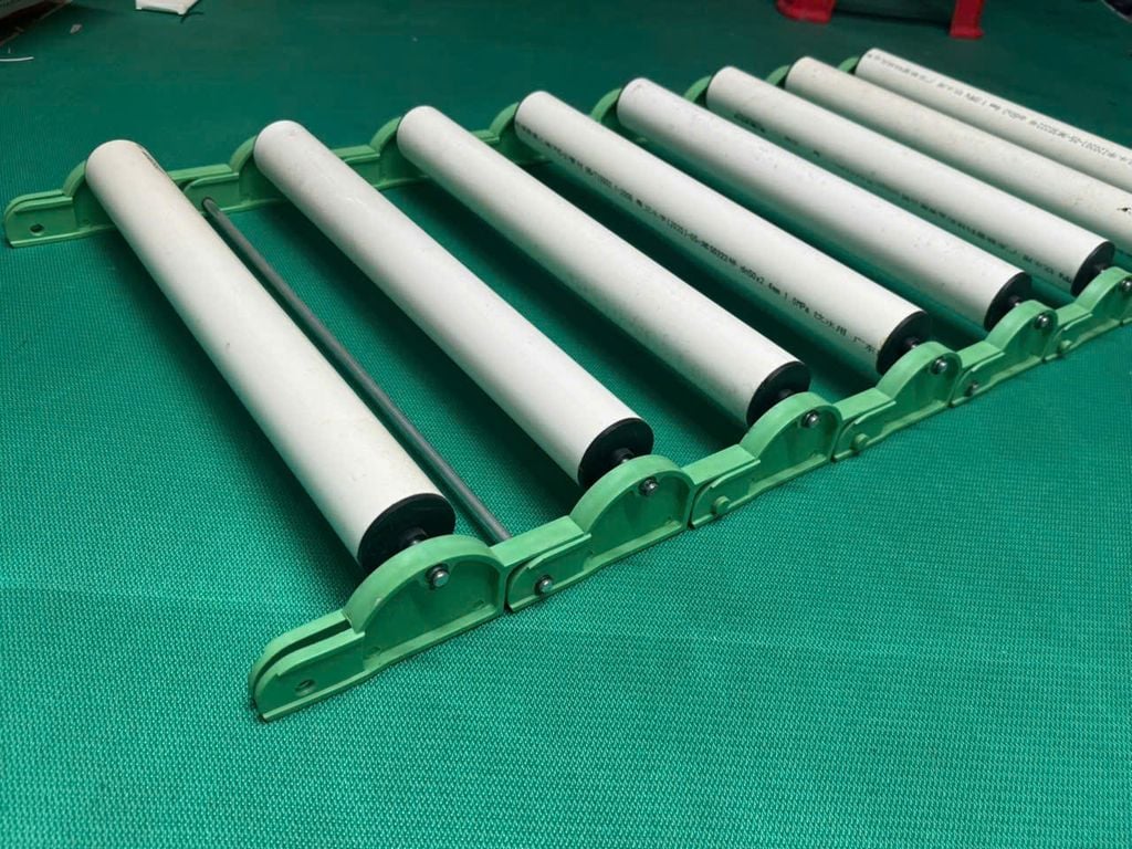 - Chi phí hợp lý: Giá thành sản xuất và mua mới thường rẻ hơn đáng kể so với băng tải con lăn kim loại như inox hay thép.