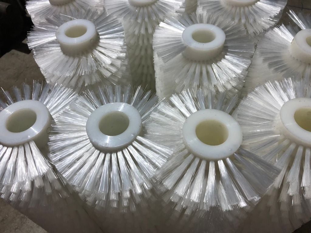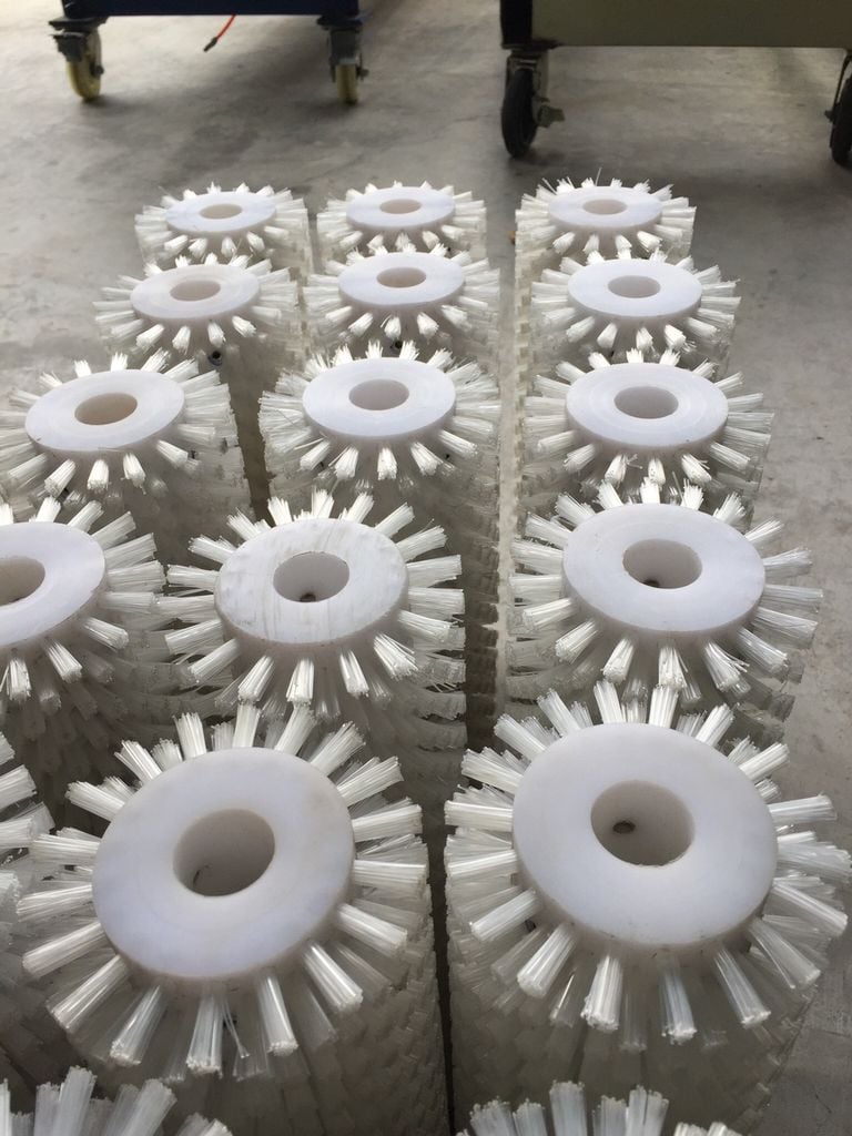 Chất liệu: các sợi cước PP hay Nylon, Lông đuôi ngựa chịu nhiệt gắn trên nền lô nhựa, Gắn trên gỗ, Teflon,...
