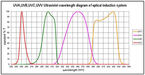 Quang phổ: UV Meter Puck, UVA (320-395nm), UVB (280-320nm), UVC (250-260nm) và UVV (395-445nm)